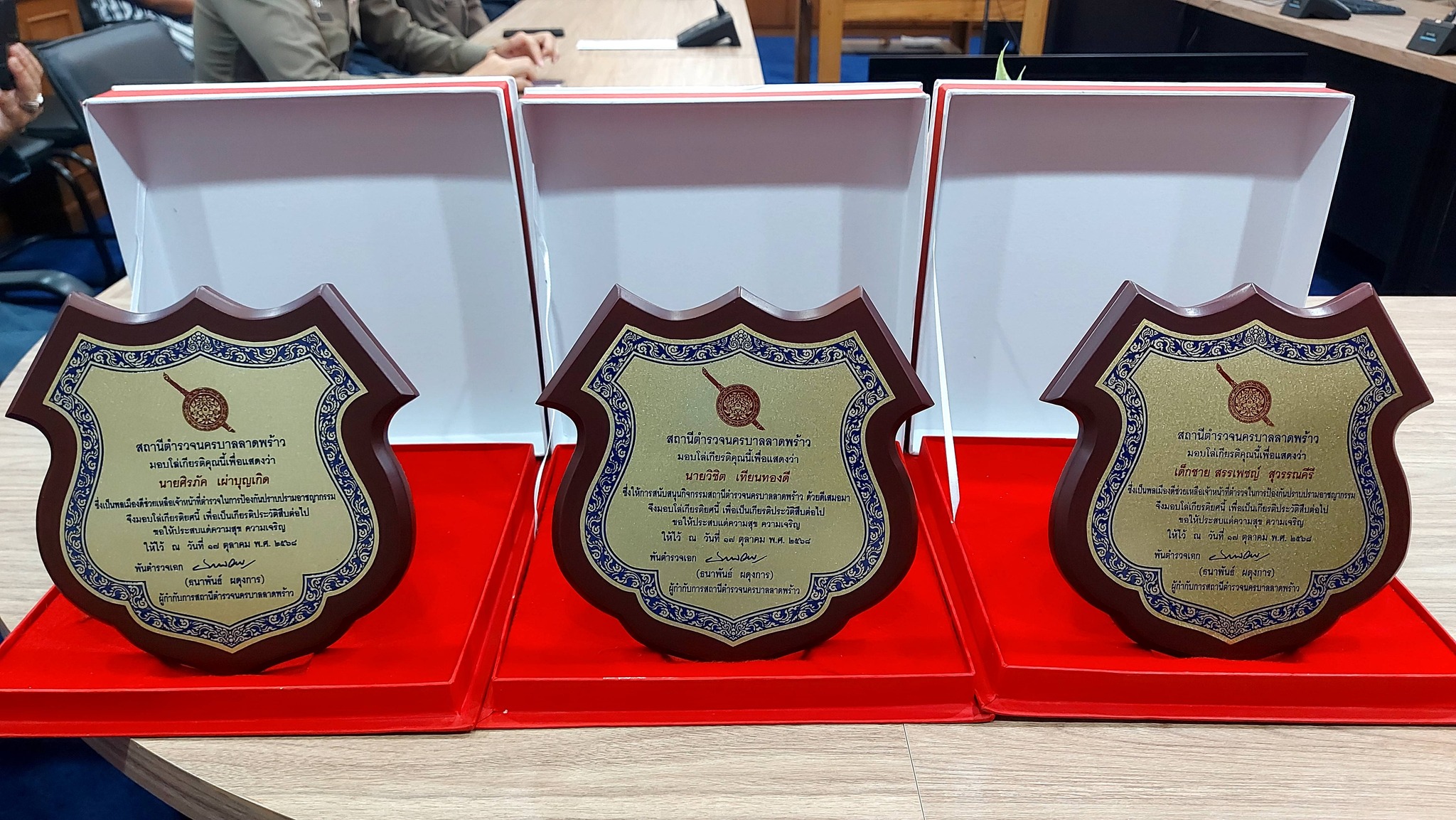 จัดพิธีมอบ โล่ประกาศเกียรติคุณแก่พลเมืองดี ที่ให้ความร่วมมือและสนับสนุนการทำงานของเจ้าหน้าที่ตำรวจ รวมจำนวน 3 ราย ได้แก่
