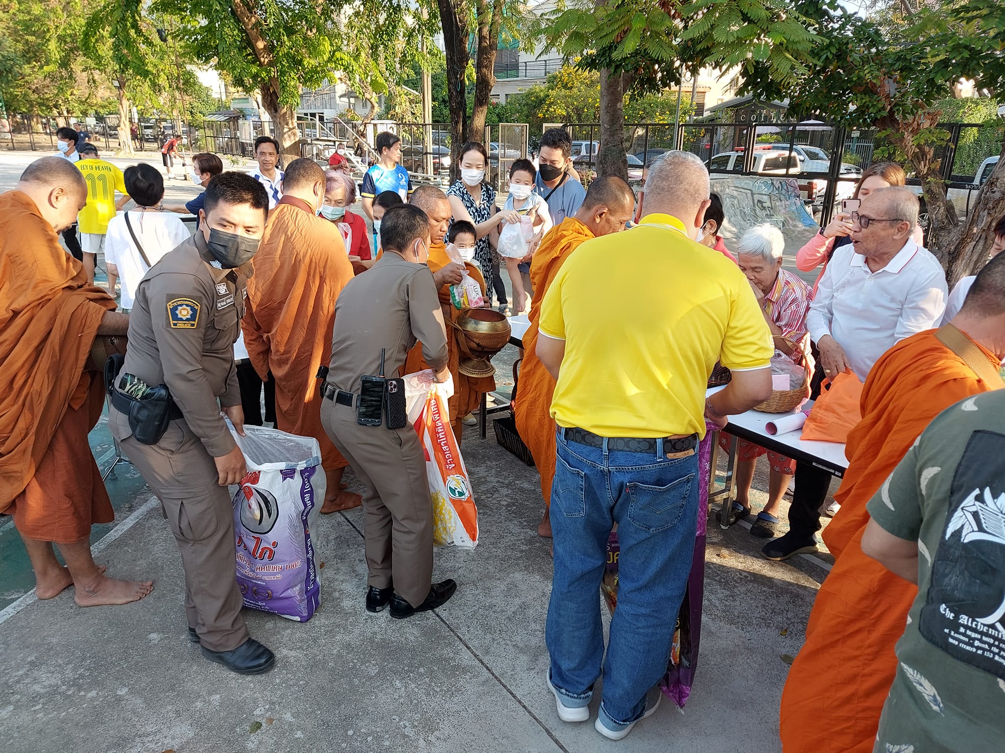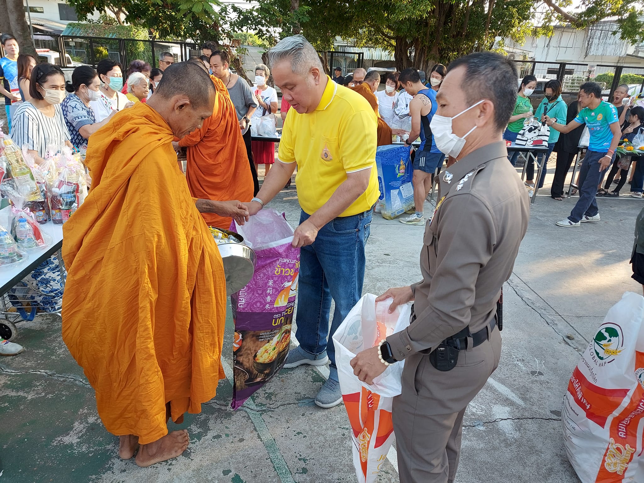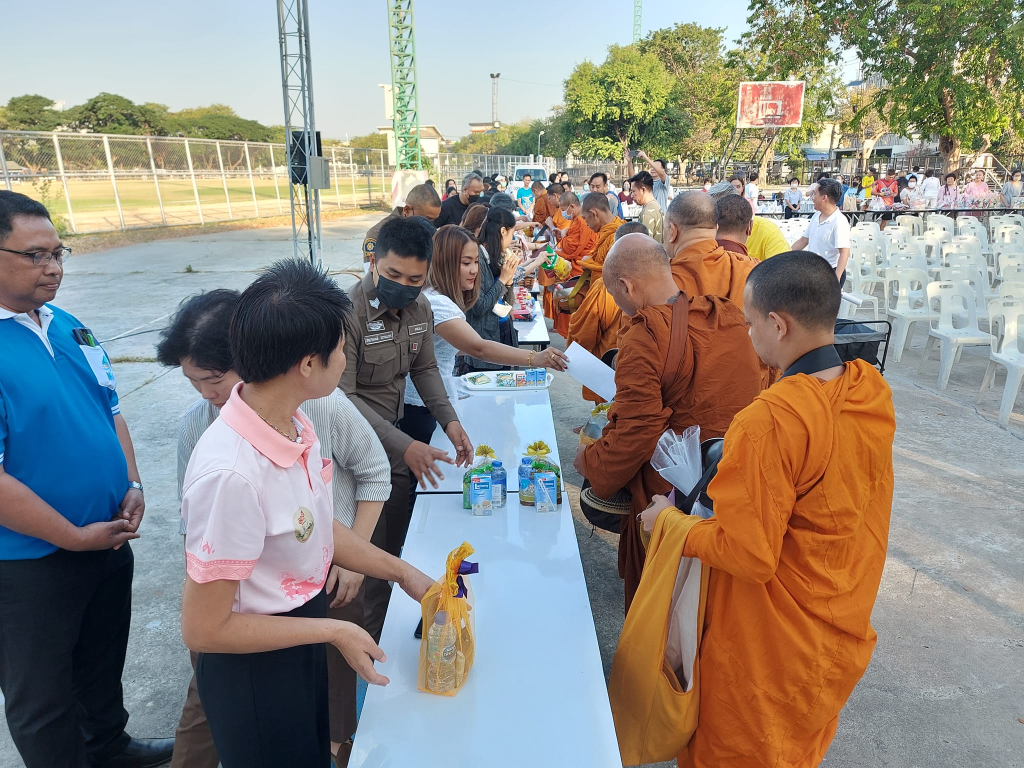 เข้าร่วมกิจกรรมทำบุญตักบาตรข้าวสารอาหารแห้งพระสงฆ์จำนวน 9 รูป