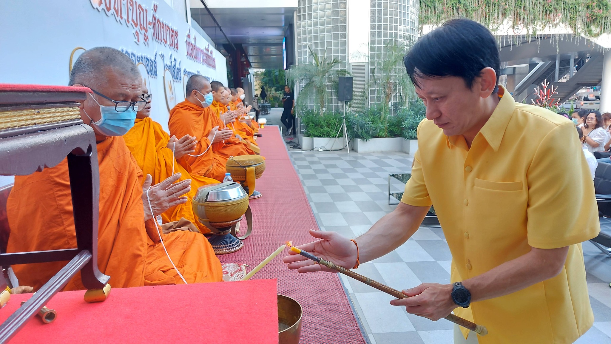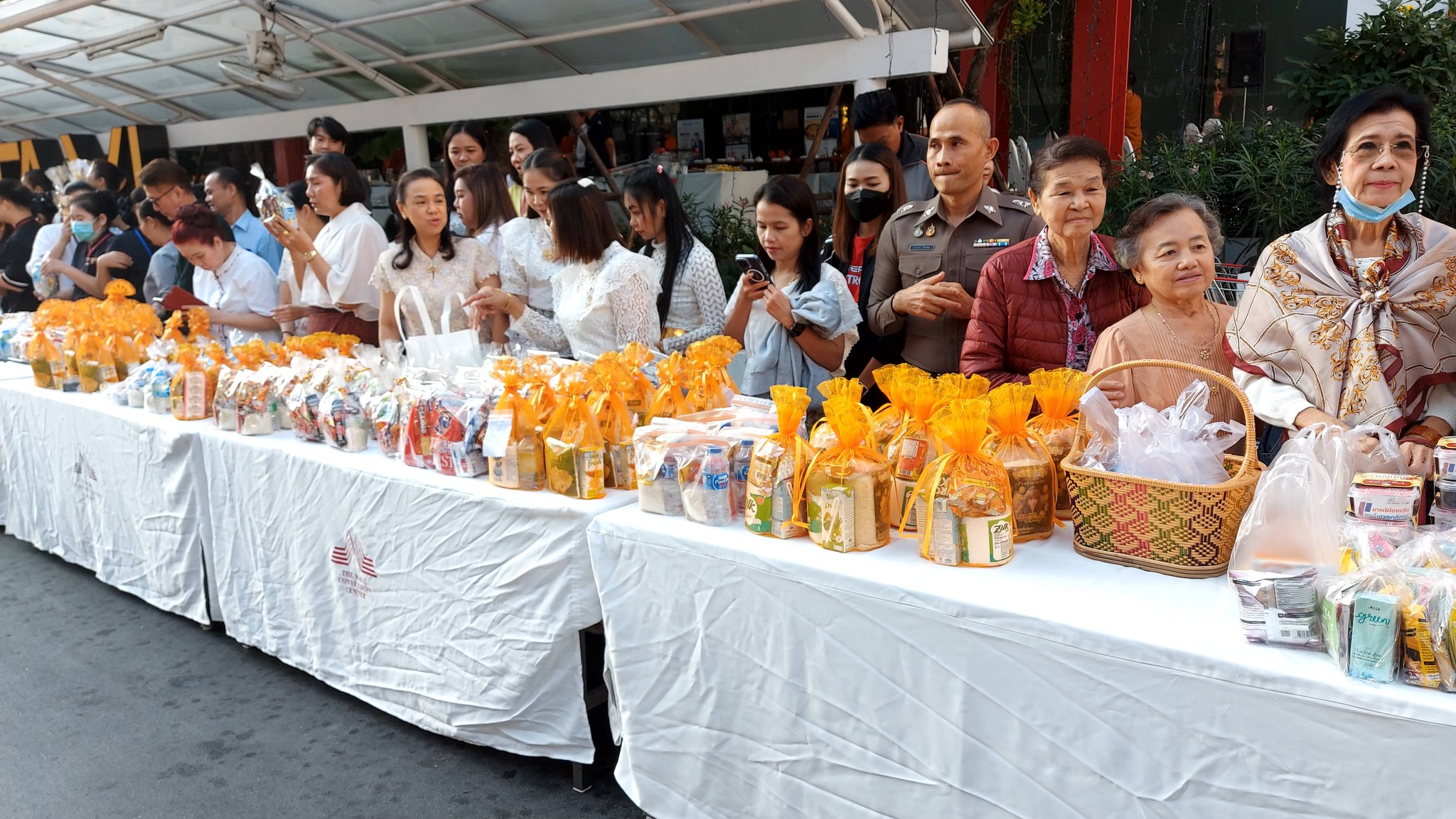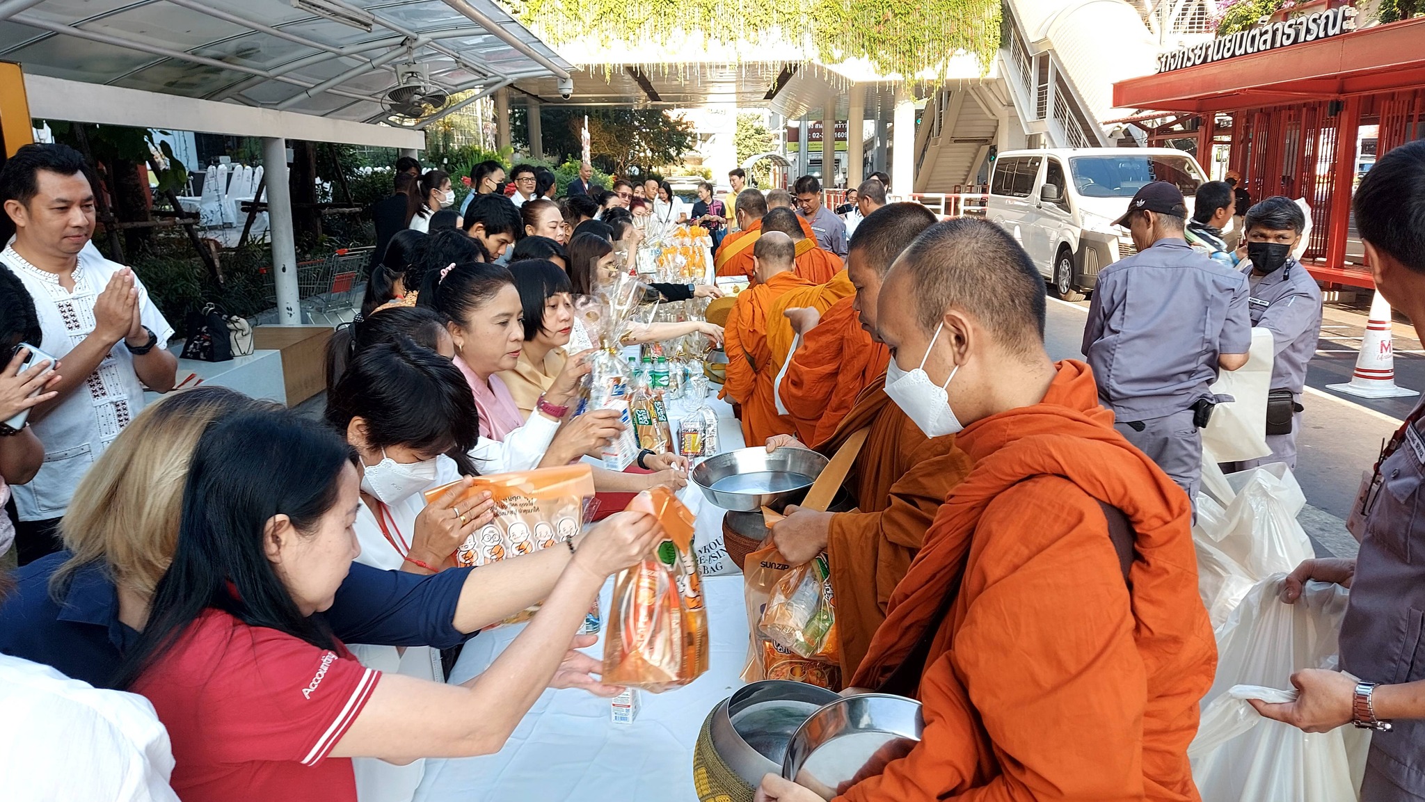 ร่วมกิจกรรมทำบุญเลี้ยงพระเนื่องในวันขึ้นปีใหม่และตักบาตรข้าวสาร อาหารแห้ง พระสงฆ์ จำนวน 9 รูป
