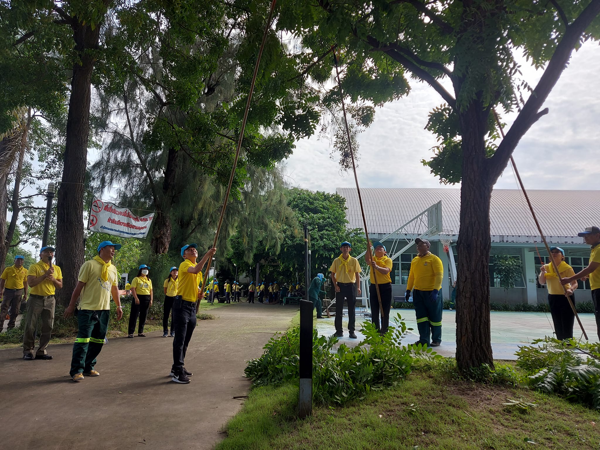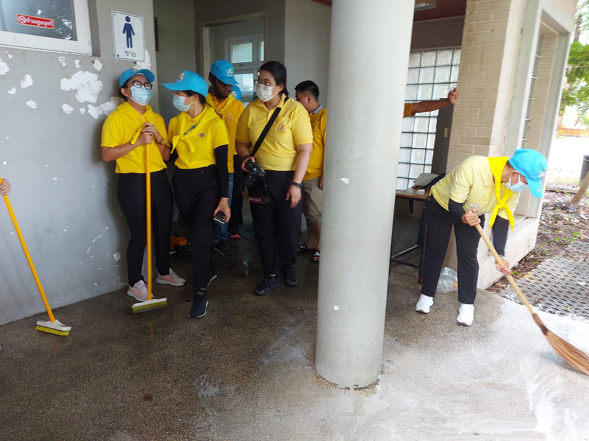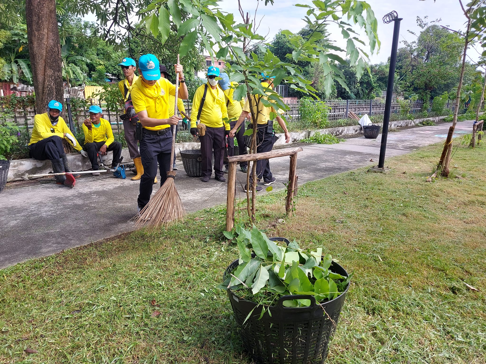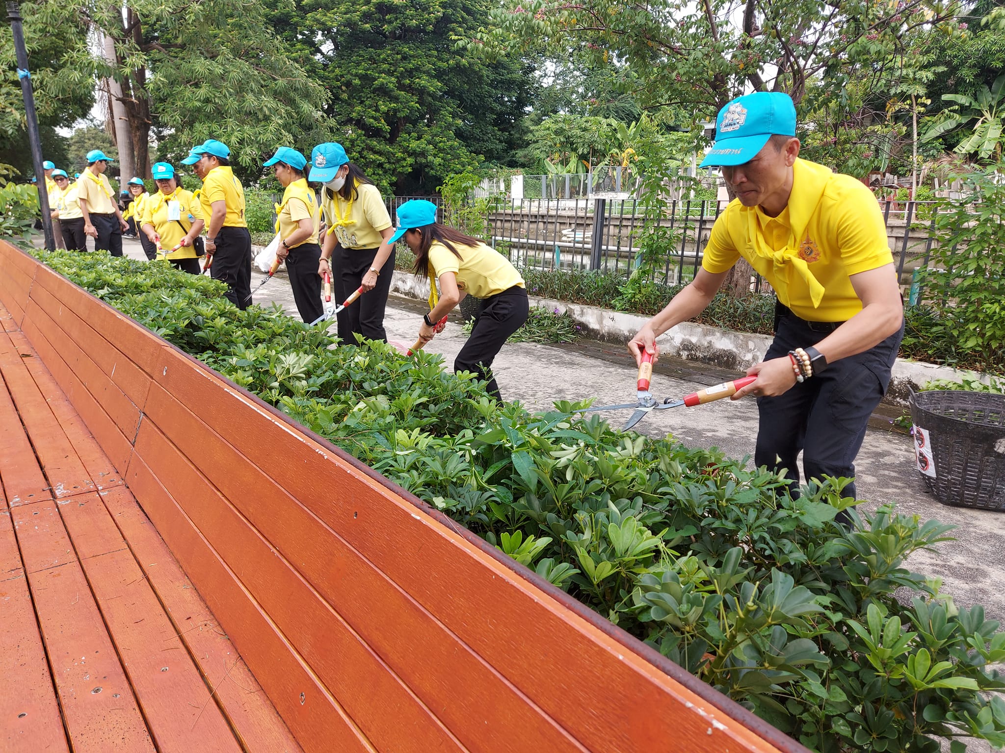 ร่วมกิจกรรมจิตอาสาพัฒนา เทน้ำหมักชีวภาพ ตัดแต่งกิ่งไม้ปรับภูมิทัศน์ ทำความสะอาดห้องสุขาสาธารณะ